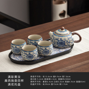 【青花黄汝】仿古壶(一壶四杯)+青花面茶盘/硬灰包