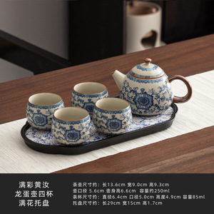 【青花黄汝】龙蛋壶(一壶四杯)+青花面茶盘