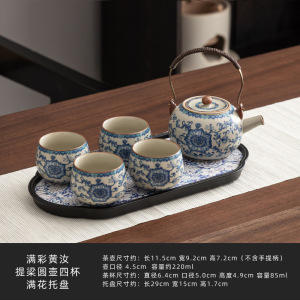 【青花黄汝】提梁圆壶(一壶四杯)+青花面茶盘