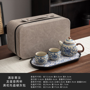 【青花黄汝】龙蛋壶(一壶四杯)+青花面茶盘/硬灰包