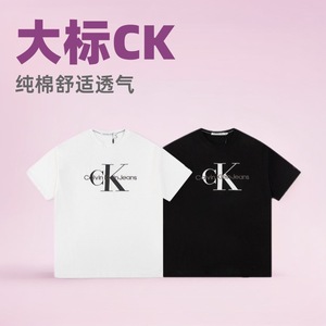 爆款CK新款JeansJENNIE同款男女短袖跨境大标印花刺绣纯棉logoT