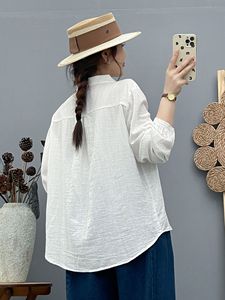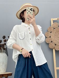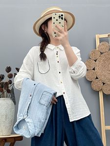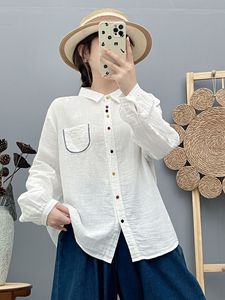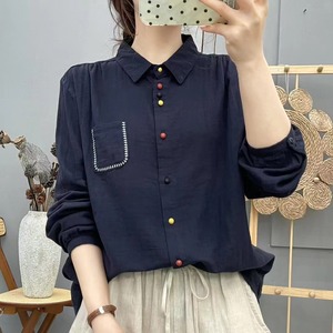 2025秋装新款 双层棉纱彩色包扣宽松长袖衬衫女休闲百搭衬衣上衣