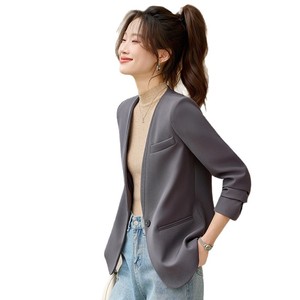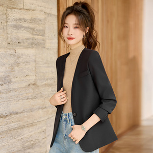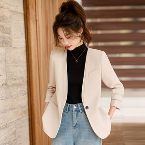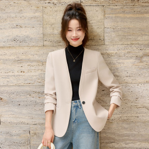 米白色无领西装外套女春秋2025新款气质高级感炸街休闲小个子西服