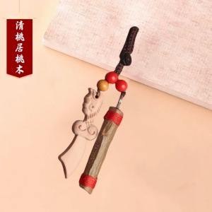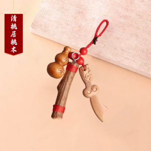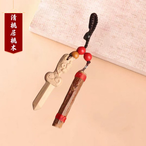 肥城野生桃木东南枝钥匙扣婴幼儿桃木剑挂件宝宝桃木枝随身挂件