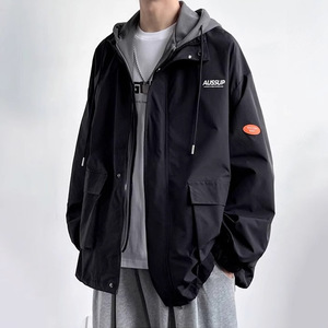 2025春秋季工装连帽夹克男新款褂子青少年秋冬假两件宽松外套薄款