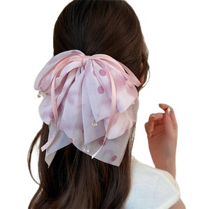 超仙蝴蝶结飘带波点发夹后脑勺鲨鱼抓夹夏日新款半扎发高级感夹子