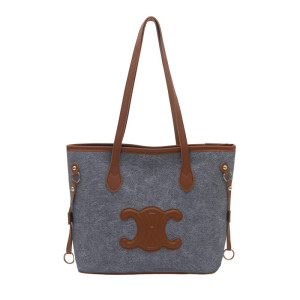 批发韩版撞色手提托特包女包2025秋新款大容量单肩包网红潮腋下包