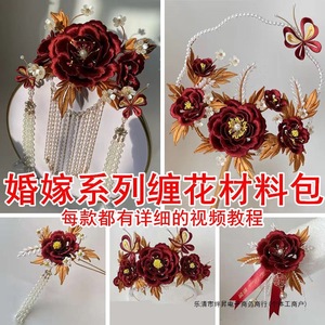 婚嫁新婚礼秀禾缠花材料包纸卡套装原创图样纸模发冠后压胸花团扇