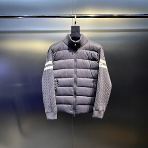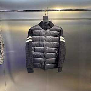正确版高品质.M蒙家立领拉链条纹羊毛拼接羽绒服夹克外套男女同款