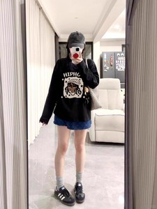 长袖t恤女 内搭打底衫春秋季新款纯棉嘻哈酷外穿休闲宽松束口上衣