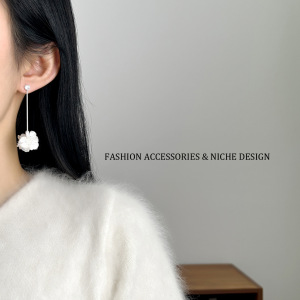 清透立体白色亚克力花球锆石耳环超仙长款流苏高级精致度假风耳钉