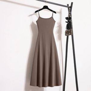 莫代尔春夏吊带背心连衣裙大码百搭胖mm宽松外穿内搭打底过膝长裙