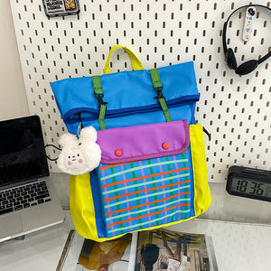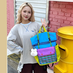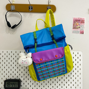 多巴胺新款拼撞色双肩背包旅行大容量外出搞怪背包少女户外旅行包