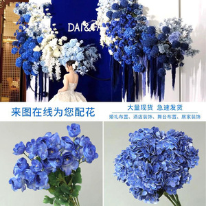 克莱因宝蓝色仿真花婚礼堂布置深蓝色假花吊顶直播间装饰插花玫瑰