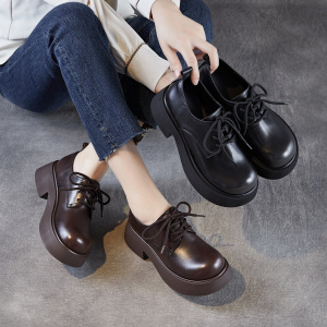真皮英伦风厚底百搭系带小皮鞋女2025春秋新款复古系带休闲乐福鞋
