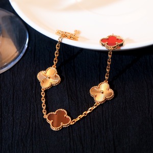梵家玑镂雕五花间红玉髓手链ins风小众轻奢高级感不褪色厂家直销