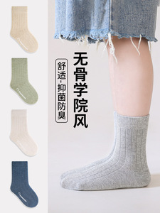 儿童袜秋季新品男童棉袜10A抗菌无骨学生学院风女童宝宝中筒袜子