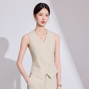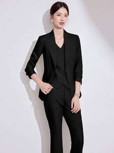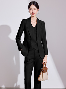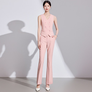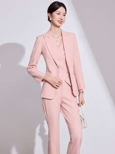 粉色职业西装套装女春秋季新款高级感通勤面试正装西服马甲三件套