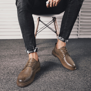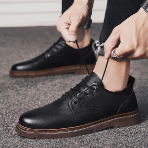 青年皮鞋男韩版潮流春季百搭2025商务休闲鞋增高英伦风软底马丁鞋