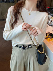 针织衫女内搭高级感打底衫2025春秋新款上衣长袖宽松圆领早秋毛衣