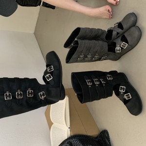 复古皮带扣包头凉靴2025新款平底炸街辣妹芭蕾舞透气镂空靴子