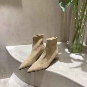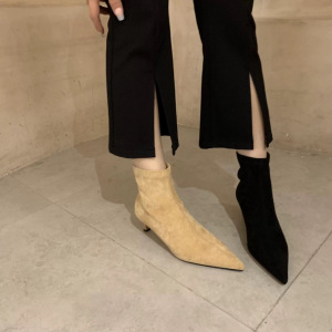 2025春季尖头细跟弹力靴网红瘦瘦靴中筒靴磨砂高跟加绒通勤短靴女