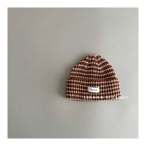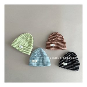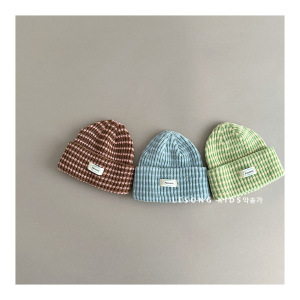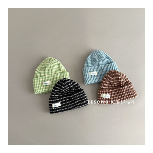 2025秋冬新款儿童毛线帽韩系条纹男女童针织帽宝宝保暖护耳套头帽