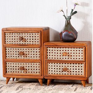 桌面木制收纳柜藤编小抽屉杂物储物盒办公室书桌上置物架文具箱柜