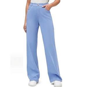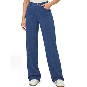 跨境欧美亚马逊牛仔裤女装潮流高腰直筒弹力宽松牛仔阔腿裤长裤女