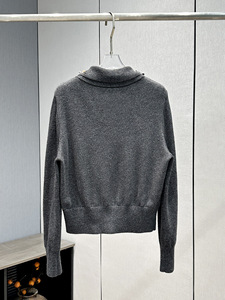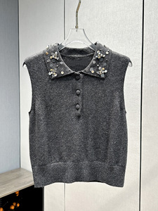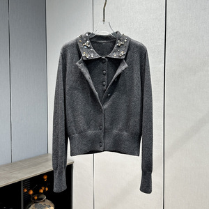 深圳南油2025秋季新款重工亮片半开领长袖羊毛针织衫两件套上衣女