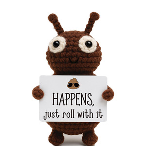 跨境新款成品手工毛线钩织正能量屎壳郎玩偶卡通迷你昆虫情感摆件