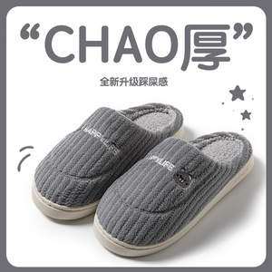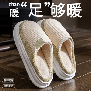 棉拖鞋女秋2025冬季新款室内家居防滑厚底保暖加绒情侣毛毛拖鞋男