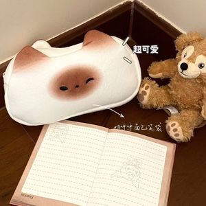 新款卡通笔袋可爱奶乎乎烤面包小猫文具盒高颜值少女毛绒收纳袋