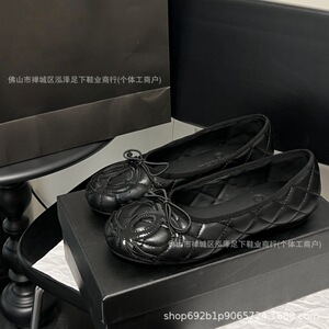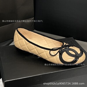 2025小香风中古康鹏蝴蝶结芭蕾舞鞋平底单鞋时尚百搭经典菱格女鞋