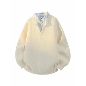 2025秋装新款男士立体美式复古设计感假两件毛衣宽松休闲针织衫男