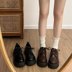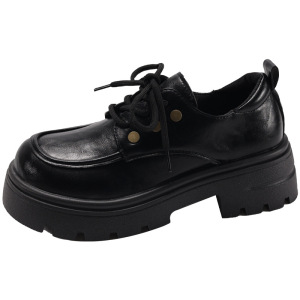 时尚爆款百搭圆头系带乐福鞋2025秋冬新款网红粗跟厚底增高小皮鞋