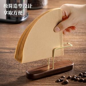跨境新品手冲咖啡V形扇形滤纸通用实木收纳架 酒店餐厅桌面收纳盒