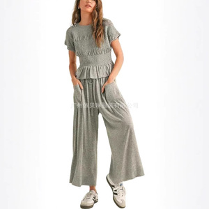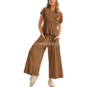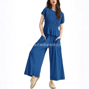 时尚2025春夏季英伦风气质女装拼贴棉哈伦裤中腰休闲裤厂家直销