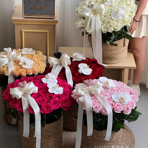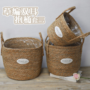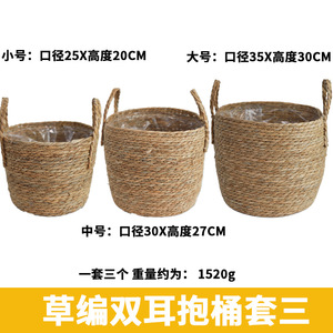 七夕草编双耳抱桶手工编织抱抱桶鲜花插花桶手捧礼物篮礼品篮批发