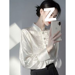新中式国风内搭打底衫女早春高级感轻奢减龄洋气白色提花衬衫2025