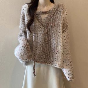 秋冬渐变色V领针织衫彩点毛衣女2025春秋季大码胖mm遮肚洋气上衣