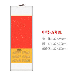 进记2026年宣纸日历挂历空白书法国画宣纸手写卷轴装裱绫布挂轴