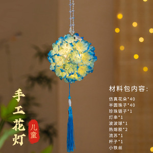 中秋灯笼儿童手提古风国潮绣球花灯笼手工diy材料包挂饰发光花灯