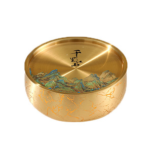 【千里江山】纯黄铜茶盘
