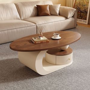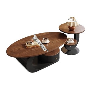 意式轻奢胡桃木色椭圆形茶几客厅家用小户型茶桌组合现代简约新款