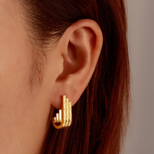 跨境直供不锈钢几何U形多层耳环女式设计感个性电镀18K耳饰批发