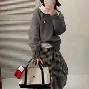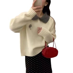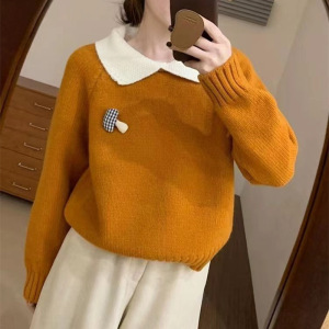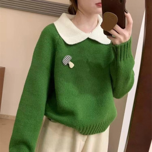 娃娃领蘑菇装饰毛衣女秋冬新款韩系慵懒风纯色百搭针织衫长袖上衣
