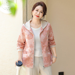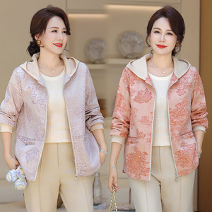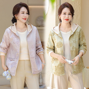 妈妈秋装洋气连帽风衣外套拉链上衣2025新款中老年女装休闲夹克衫