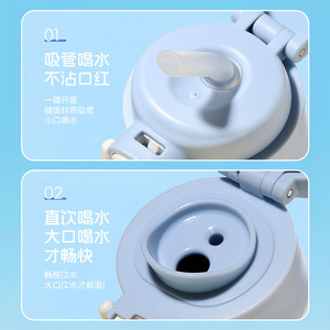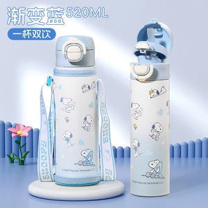 史努比儿童保温杯食品级316不锈钢学生卡通水杯带吸管便携杯子男