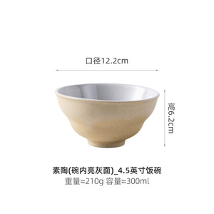 素陶(土黄_内亮灰面)_4.5英寸外纹碗/容量300ml